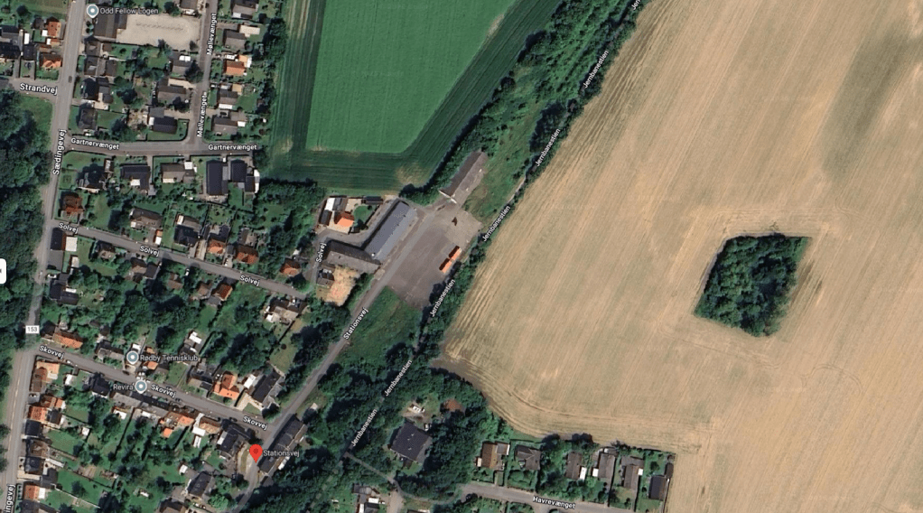 Throughout they, Helle uses Lolland’s endonyms with a familiarity that belies how many of these are also laser-specific. The daughter and her mother live at one point on ‘Kongeleddet.’ For that term, Google Maps goes right to a four-pronged array of modernist apartment blocks in Rødby. Later, the daughter goes to a boy’s house party in Gerringe, which appears to be just two farms and just one home, huddled along a bend in a byway. There is only one home on earth where the boy could’ve lived. My favorite sentence in the book goes “At the bottom of Stationsvej it turns out there’s a station.” There actually was.
